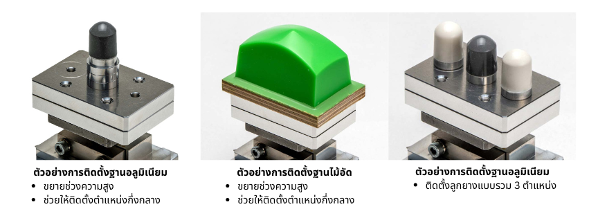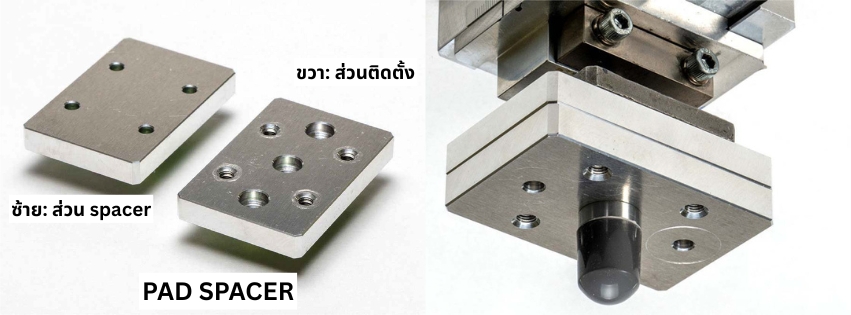 การติดตั้งแพดสเปเซอร์เข้ากับฐานลูกยางที่มีอยู่ สามารถย่นระยะการกดลงของลูกยาง และขยายตำแหน่งการพิมพ์ได้ เหมาะกับลูกค้าที่เครื่องจักรมีข้อจำกัดในการปรับตำแหน่งหรือแรงกด อีกทั้งยังทำให้สามารถติดตั้งลูกยางขนาดเล็ก ให้อยู่ในตำแหน่งกึ่งกลางได้อย่างง่ายดาย
